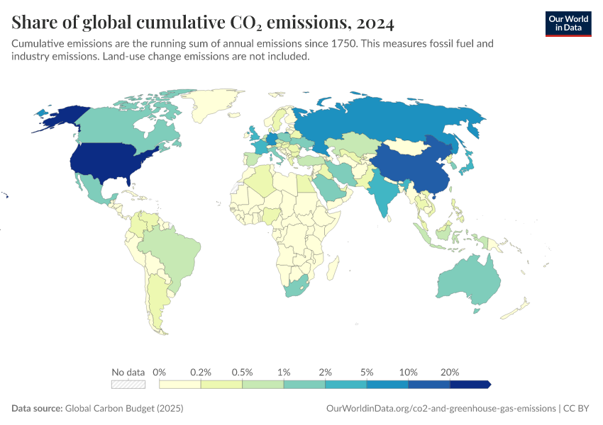 So while these countries might account for a small share of emissions today, they have contributed significantly more over time.