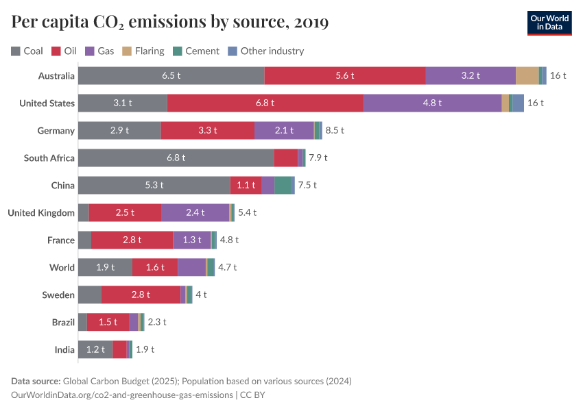 Per capita: How do coal, oil, gas, and cement emissions compare?