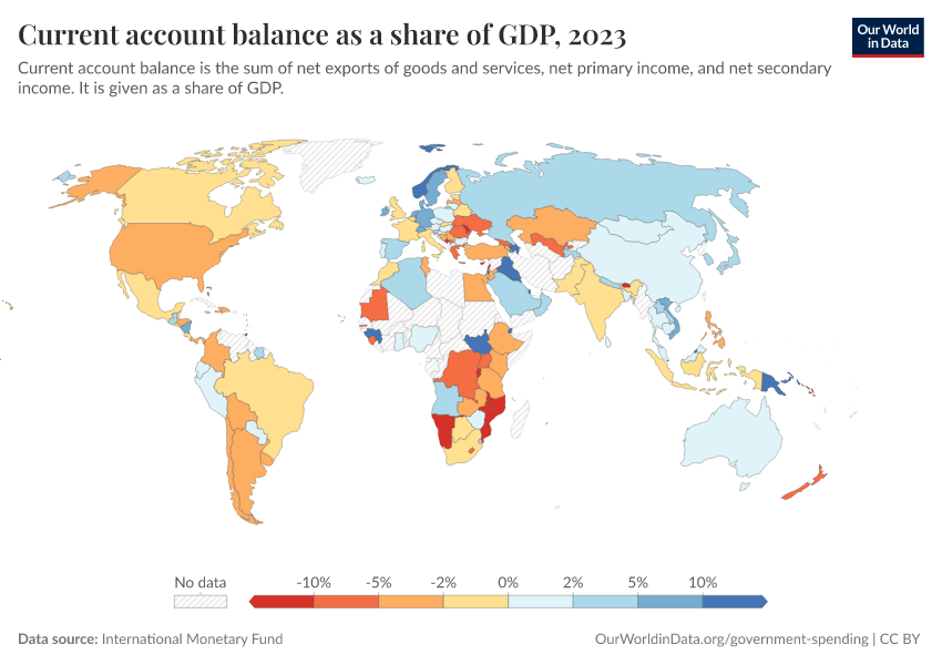 “Data Page: Current account balance as a share of GDP”. Our World in Data (2026). Data adapted from International Monetary Fund. Retrieved from https://pop-growth-BCE.owid.pages.dev:8789/20251120-211749/grapher/current-account-balance-as-a-proportion-of-gdp.html [online resource] (archived on November 20, 2025).How to cite this data