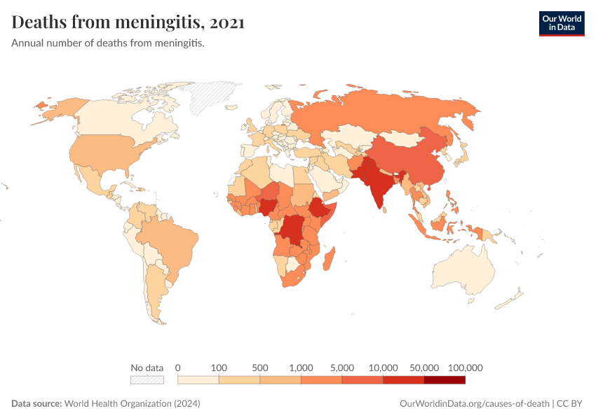“Data Page: Deaths from meningitis”, part of the following publication: Esteban Ortiz-Ospina and Max Roser (2016) - “Global Health”. Data adapted from World Health Organization. Retrieved from https://pop-growth-BCE.owid.pages.dev:8789/20250909-093708/grapher/deaths-from-meningitis-ghe.html [online resource] (archived on September 9, 2025).How to cite this data