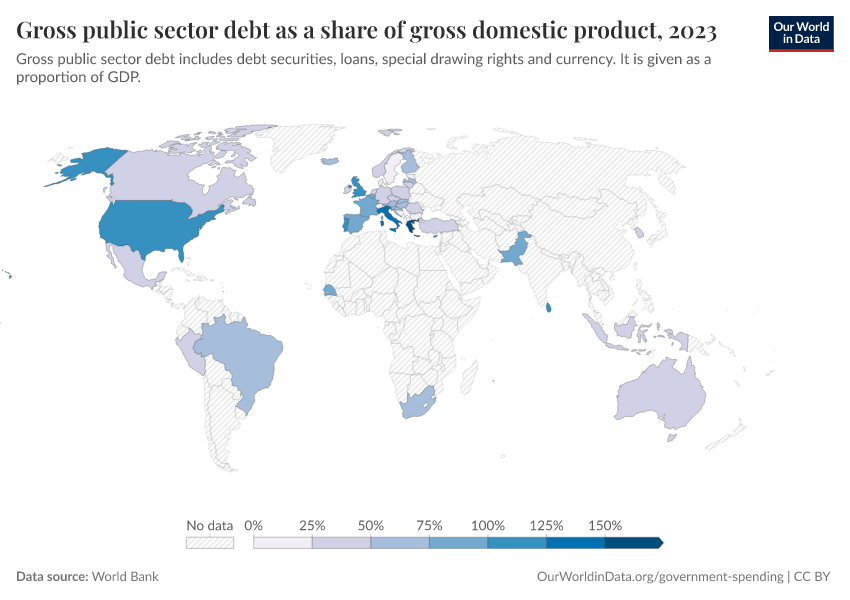 “Data Page: Gross public sector debt as a share of gross domestic product”. Our World in Data (2026). Data adapted from World Bank. Retrieved from https://pop-growth-BCE.owid.pages.dev:8789/20251120-211749/grapher/gross-public-sector-debt-as-a-proportion-of-gdp.html [online resource] (archived on November 20, 2025).How to cite this data