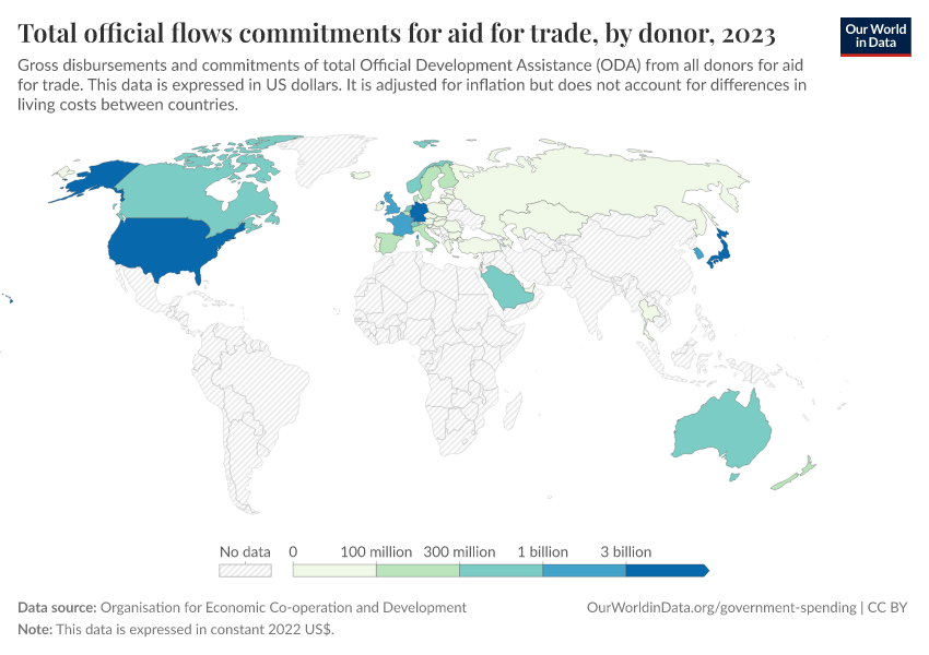 “Data Page: Total official flows commitments for aid for trade, by donor”. Our World in Data (2026). Data adapted from Organisation for Economic Co-operation and Development. Retrieved from https://pop-growth-BCE.owid.pages.dev:8789/20251120-211038/grapher/total-oda-for-aid-for-trade-by-donor.html [online resource] (archived on November 20, 2025).How to cite this data