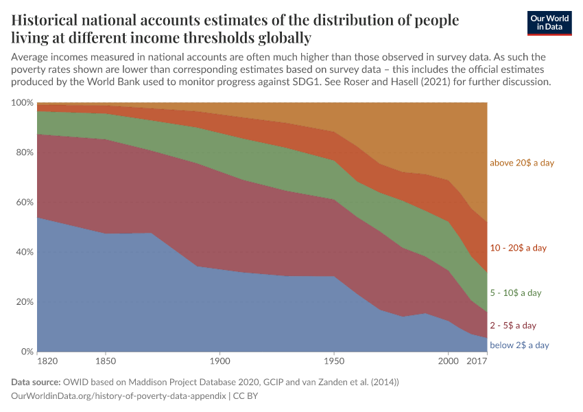 Joe Hasell (2019) - “Data appendix – The fight against global poverty: 200 years of progress and still a very long way to go” Published online at OurWorldinData.org. Retrieved from: 'https://pop-growth-BCE.owid.pages.dev:8789/20260128-140124/history-of-poverty-data-appendix.html' [Online Resource] (archived on January 28, 2026).BibTeX citation