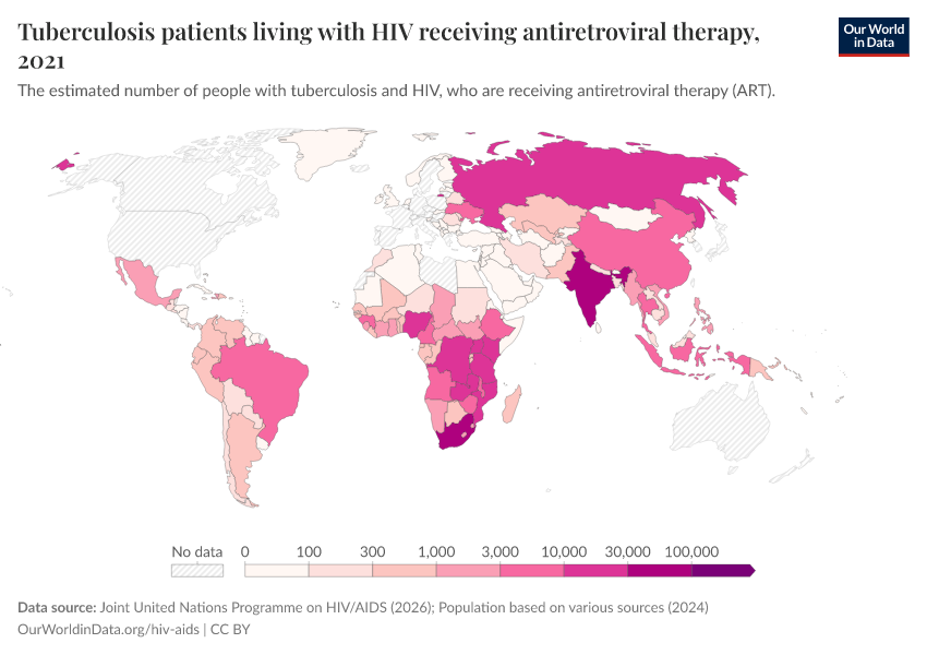 Tuberculosis (TB) is the leading HIV-associated opportunistic infection in low- and middle-income countries, and it is a leading cause of death globally among people living with HIV. Death due to tuberculosis remains high among people living with HIV. However, the number of deaths is decreasing. Most of the global mortality due to TB among those with HIV is from cases in Sub-Saharan Africa.
