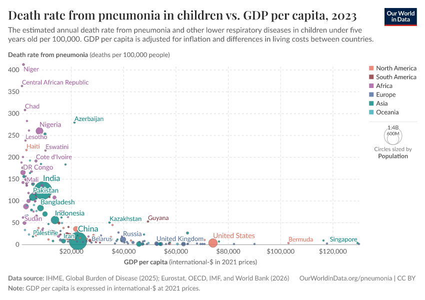 Bernadeta Dadonaite and Max Roser (2019) - “Pneumonia” Published online at OurWorldinData.org. Retrieved from: 'https://pop-growth-BCE.owid.pages.dev/pneumonia' [Online Resource]BibTeX citation