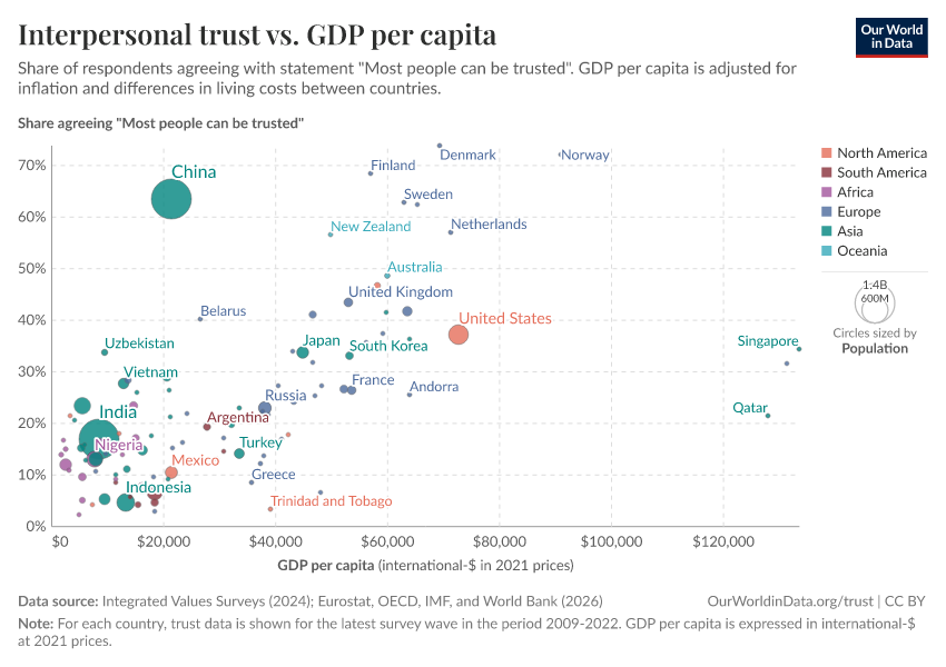 Esteban Ortiz-Ospina, Max Roser, and Pablo Arriagada (2016) - “Trust” Published online at OurWorldinData.org. Retrieved from: 'https://pop-growth-BCE.owid.pages.dev/trust' [Online Resource]BibTeX citation